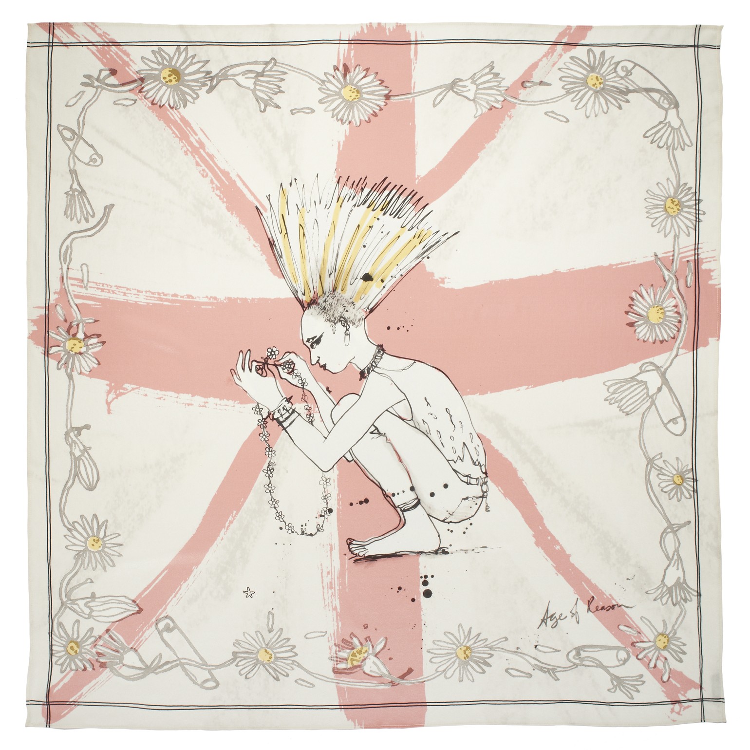 Beautiful grey and soft pink daisy punk scarf was ยฃ98 now ยฃ59, from Age of Reason at Boston&Boston, funky print on the softest English made silk. Fabulous quality, will last forever. ย Every girl should have at least one silk scarf!